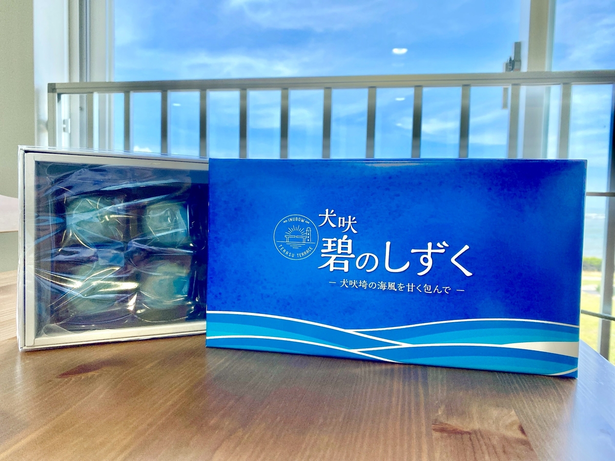 犬吠埼の海をイメージした天然色素使用の青い皮の中に
